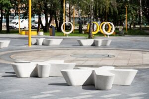 Еще не так давно объекты с уникальными формами и интересными цветовыми решениями, необычные скамейки, зеленые зоны были отличительной чертой премиальных и концептуальных проектов. Сегодня это становится нормой при создании любых общественных пространств.