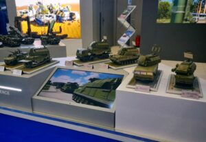 В частности, на объединенной площадке «Рособоронэкспорта» зенитные ракетные комплексы большой, средней и малой дальности, а также боевые машины и радиолокационные станции представил российский оборонный холдинг «Алмаз-Антей».